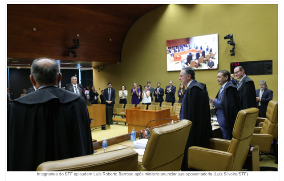 Após o anúncio, colegas de plenário prestaram homenagens. O presidente do STF, Edson Fachin, afirmou que Barroso “ajudou a construir uma cultura constitucional mais sólida e comprometida com os direitos fundamentais”. O ministro Gilmar Mendes, com quem teve divergências públicas, desejou felicidades e afirmou não guardar mágoas. Já Luiz Fux classificou Barroso como “um grande constitucionalista, marcado pela integridade profunda”.