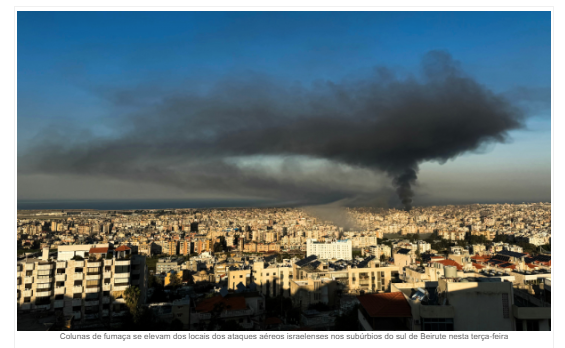 Segundo imagens da AFPTV, uma grande nuvem de fumaça era observada sobre a capital libanesa.